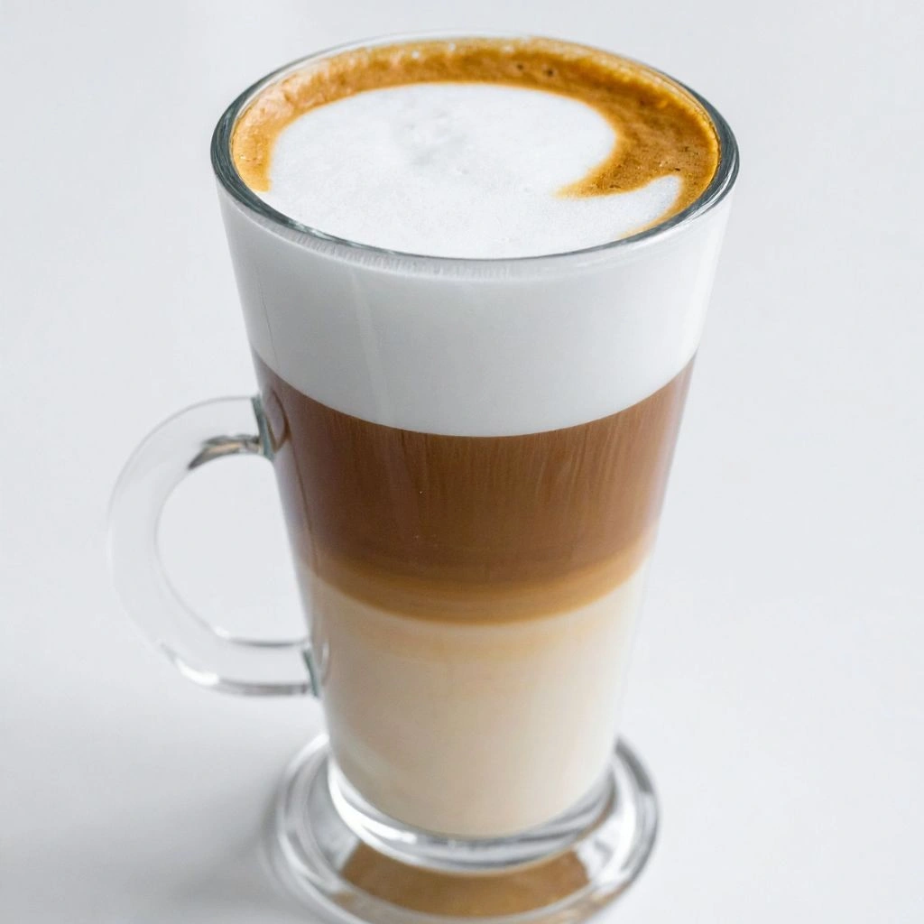 در این نوع، ماجرا برعکس است! شیر بخار دادهشده پایه است و اسپرسو روی آن ریخته میشود تا لایهای تیره روی سطح شیر بسازد. نتیجه، نوشیدنیای نرمتر و لطیفتر است که معمولاً در لیوانهای شیشهای بلند سرو میشود.
